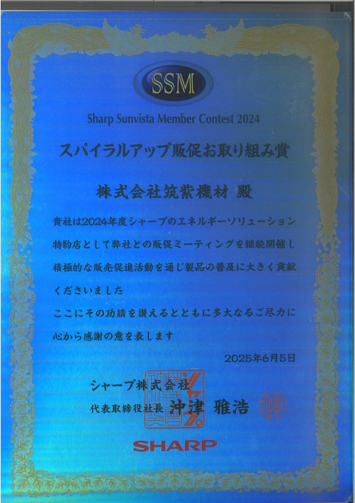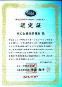 「株式会社筑紫機材(「株式会社エコテックシステム」)」は2025年もシャープサンビスタメンバーの認定店となりました。