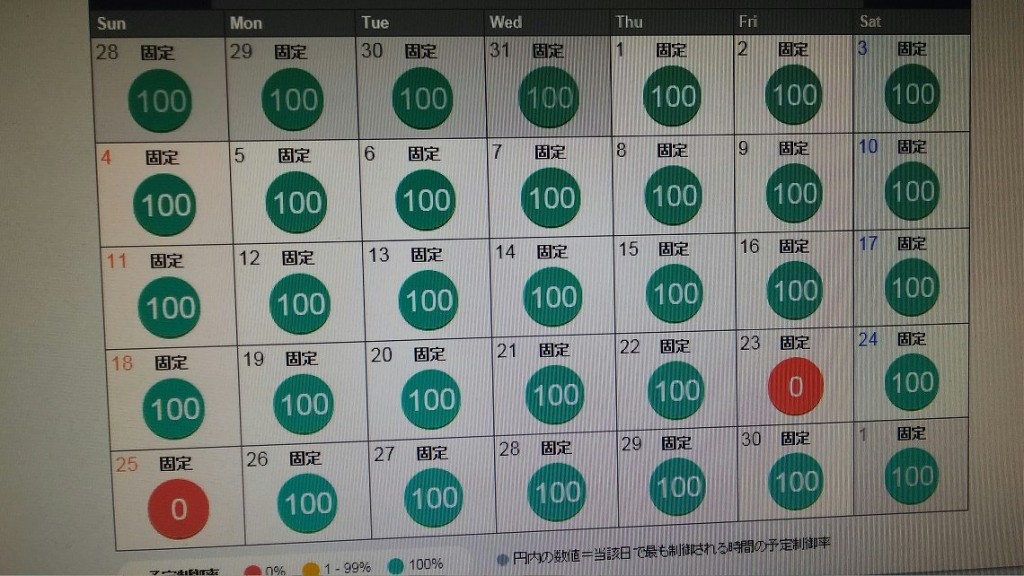 固定スケジュールではなくインターネットによる遠隔制御なので、30分毎に制御スケジュールが書き換わるとはいえ、毎月スケジューリングされているなんて、これは先が思いやられますなあ・・・。