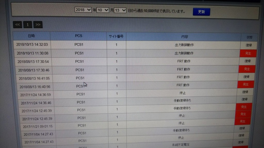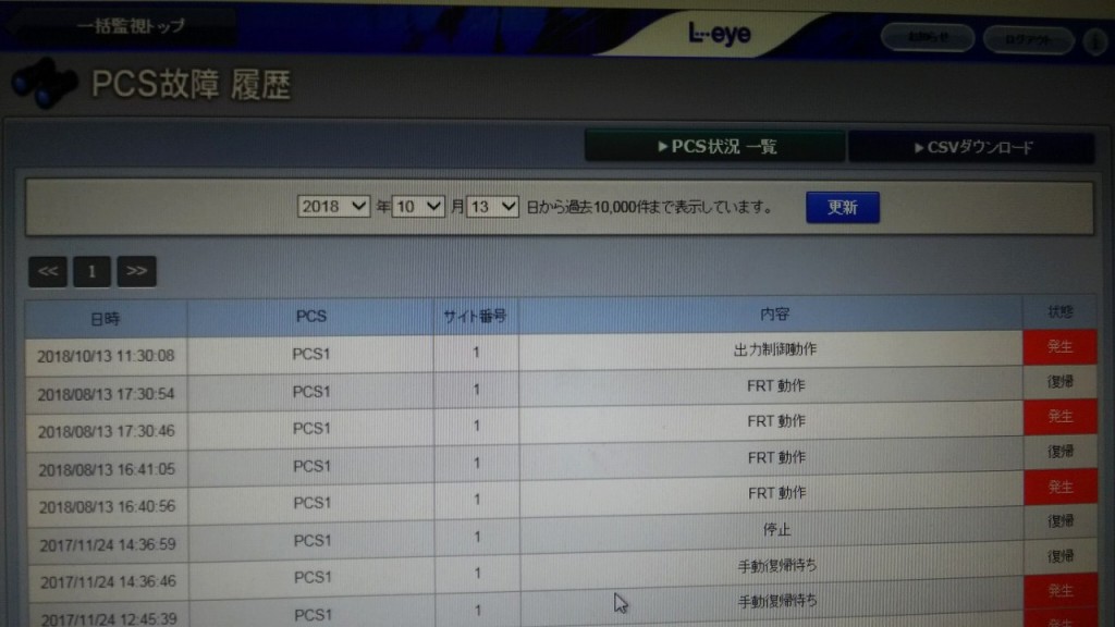 早速、遠隔監視用の画面を開いて故障履歴を見てみると、