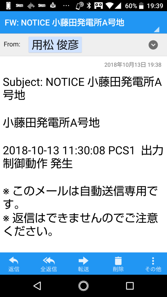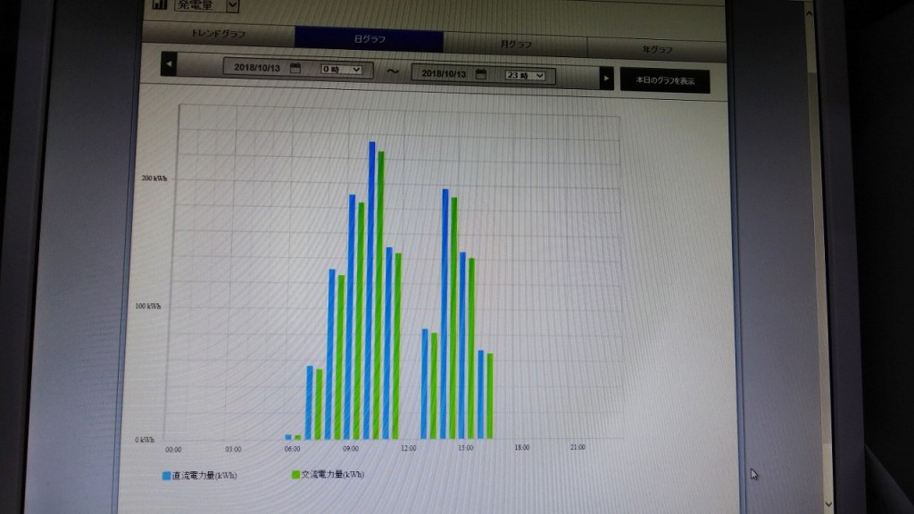 夕方、会社に帰ってから再度遠隔監視の画面を開いてみると、14時30分頃発電所の運転は復帰していました。